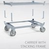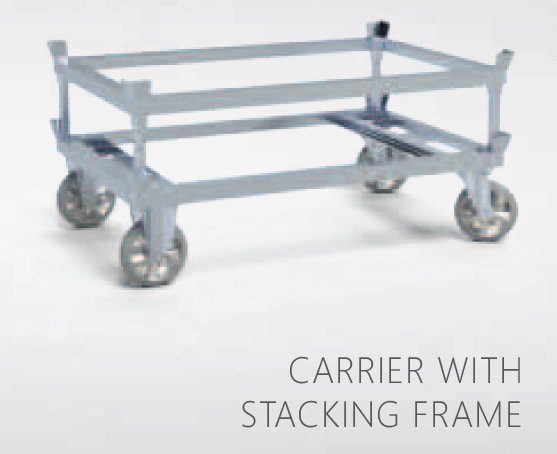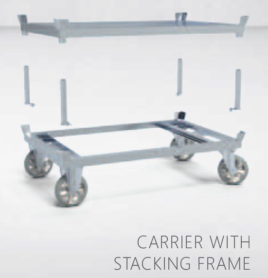 Every pallet carrier can be retrofitted with stacking frames (160 / 260 / 360 mm) as well as a drawbar and coupling for towing. The hot-dipped galvanized finish offers strong corrosion protection.
